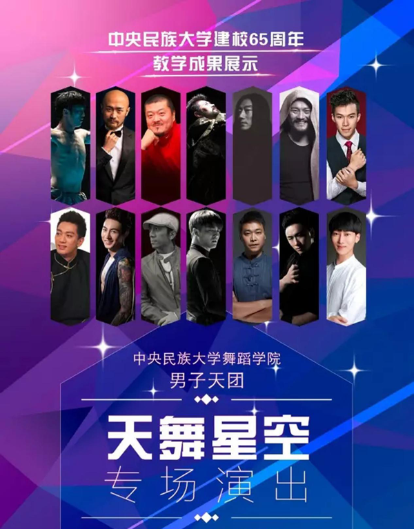 2017年上半年,中央民大舞蹈学院获国家年度艺术基金资助项目5项。近来,《雪沁》《花溪晴雨》《梦·“宣”》《勇士的歌舞》《阿嘎人》《石林情深》《牛铃》等舞院新作陆续问世。另外,从2014年开始,舞蹈学院倾力打造了中国第一支男子舞蹈天团,继而推出男子舞蹈天团《Hi》《飞吧 雄鹰》两场晚会【下图为舞蹈天团2016年演出海报】。
